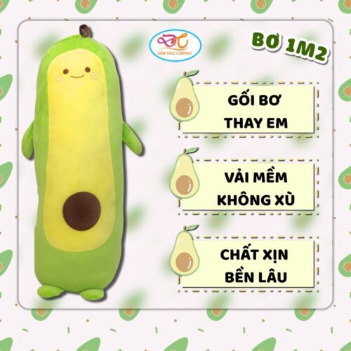 Mang hình dáng quả bơ tròn trĩnh đáng yêu, gấu bông Bơ 1m2 là món quà cực “hot” cho mọi lứa tuổi. Với thiết kế gương mặt tươi tắn, hạt bơ nâu xinh nổi bật và màu xanh tươi mát, em bơ khổng lồ này chắc chắn sẽ khiến không gian của bạn thêm phần dễ thương và sinh động.